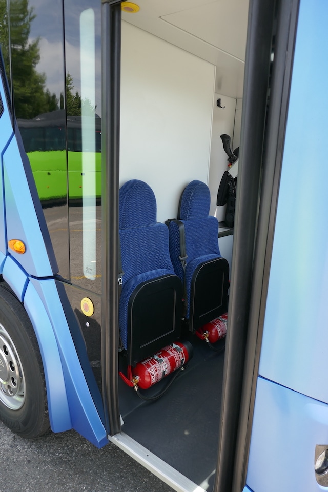 Les accélérations sont franches et séduisent par leur linéarité. Précisons que le véhicule était vide, mais sa carrosserie est suffisamment lourde pour conférer un comportement normal. La maniabilité (sujet fondamental pour une BOM) est très bonne, et l’absence de mats de rétroviseurs, remplacés ici par de discrètes caméras (d’origine Vision Systems) facilite le passage dans les rues étroites. La direction ne nous a pas convaincus : l’assistance électro-hydraulique est très bien tarée et restitue un bon ressenti de l’adhérence, ce qui est très bien. Par contre, le filtrage des cahots a été franchement décevant, chaque irrégularité de la chaussée étant fidèlement remontée dans les mains du conducteur.