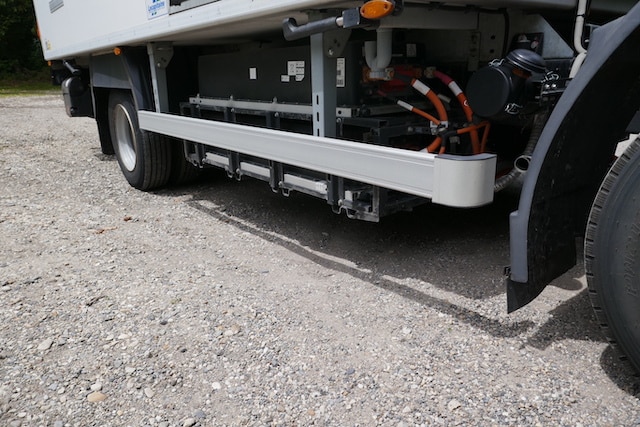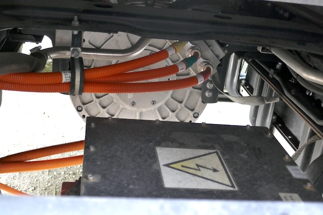 C’est un vrai petit camion pour la ville, et tout particulièrement pour les ZFE. Il y est à son aise en raison de son rayon de braquage et de son exceptionnelle accessibilité. La cabine dont le seuil est très bas y contribue, encore aidée par une marche d’accès complémentaire. Sa direction généreusement assistée, sa maniabilité et son excellente accessibilité ouvrent la voie aux conductrices. Un argument pour les artisans ou les collectivités tenues de procéder à une électrification de leurs achets de véhicules neufs dans leurs marchés publics. On a apprécié la puissance de freinage et un dispositif clairement issu de la technologie poids-lourds. Sur les parcours sur voies rapides, il suit le rythme sans souci, mais sa direction devient dès lors un peu floue ce qui est moins plaisant. L’équipement suscite quelques perplexité associant grande générosité sur certains sujets (climatisation automatique, montage d’une ePTO de 18kW en série) et lacunes manifestes (pas de rétroviseurs droits réglables à distance, absence même en option de suspension pneumatique avec agenouillement à l’arrière).