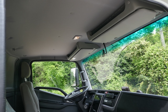 La position de conduite, malgré le peu de volume disponible théorique, est facile à trouver. Cela est amélioré par le fait qu’il n’y ait pas de pédale d’embrayage. On peut poser le pied gauche facilement. Un regret toutefois : cette fameuse colonne de direction manquant d’amplitudes de réglage. Cela amène à conduire très droit si on veut avoir les mains placées correctement sur le volant. Pour les jeunes générations adeptes de la position de conduite Gran Turismo (casquette et siège quasiment en position couchette), c’est clair « ça ne va pas le faire » . Mais cette « clientèle » s’amusera certainement des démarrages à l’arraché très vigoureux de l’iJAC 7.5t (pas sûr que les responsables de parc apprécieront ce petit jeu en regardant les facturations de pneus). L’équipement est déconcertant : on trouve une climatisation automatique très efficace mais le camion est dépourvu de tout réglage des rétroviseurs côté droit !