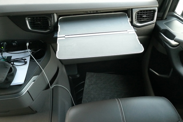 Une tablette rabattable est habilement intégrée côté passager.